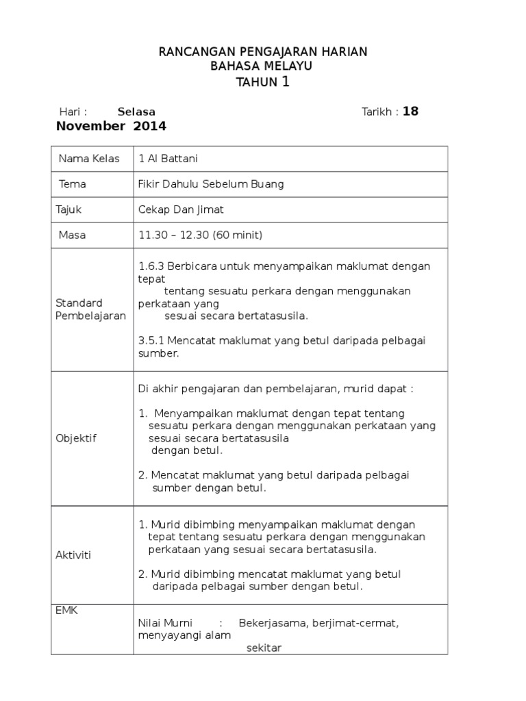 Top Pdf Rph Bahasa Melayu Tahun 1 Sumber Pendidikan Unit 14 Milik Kita 123dok Com